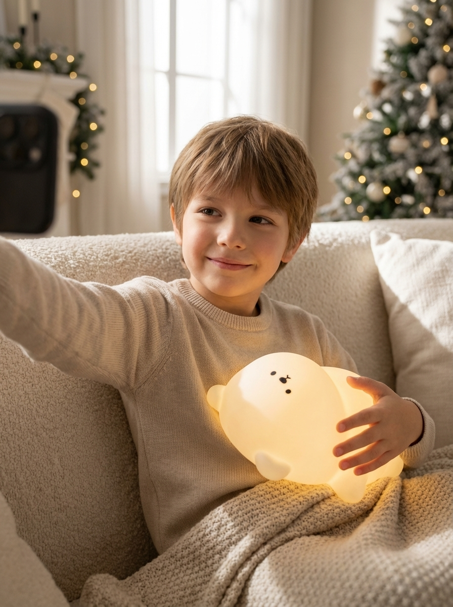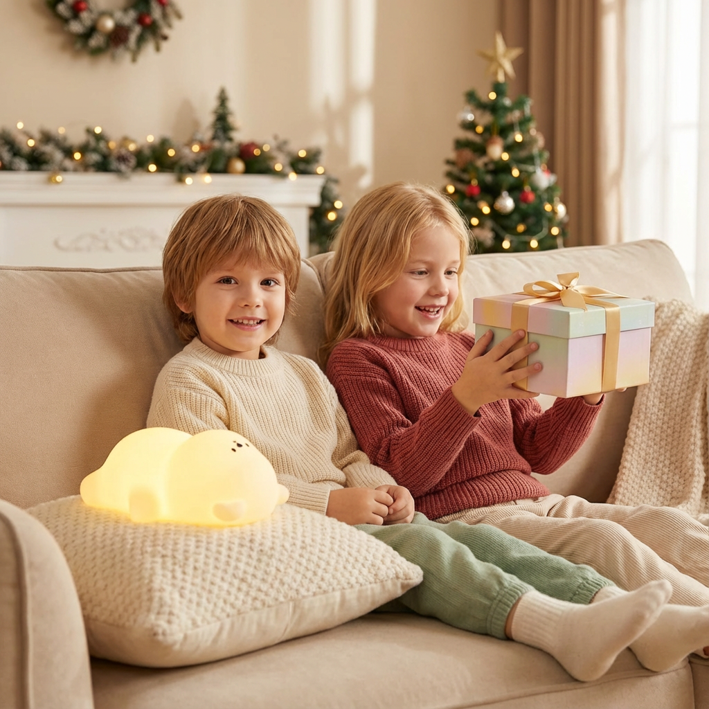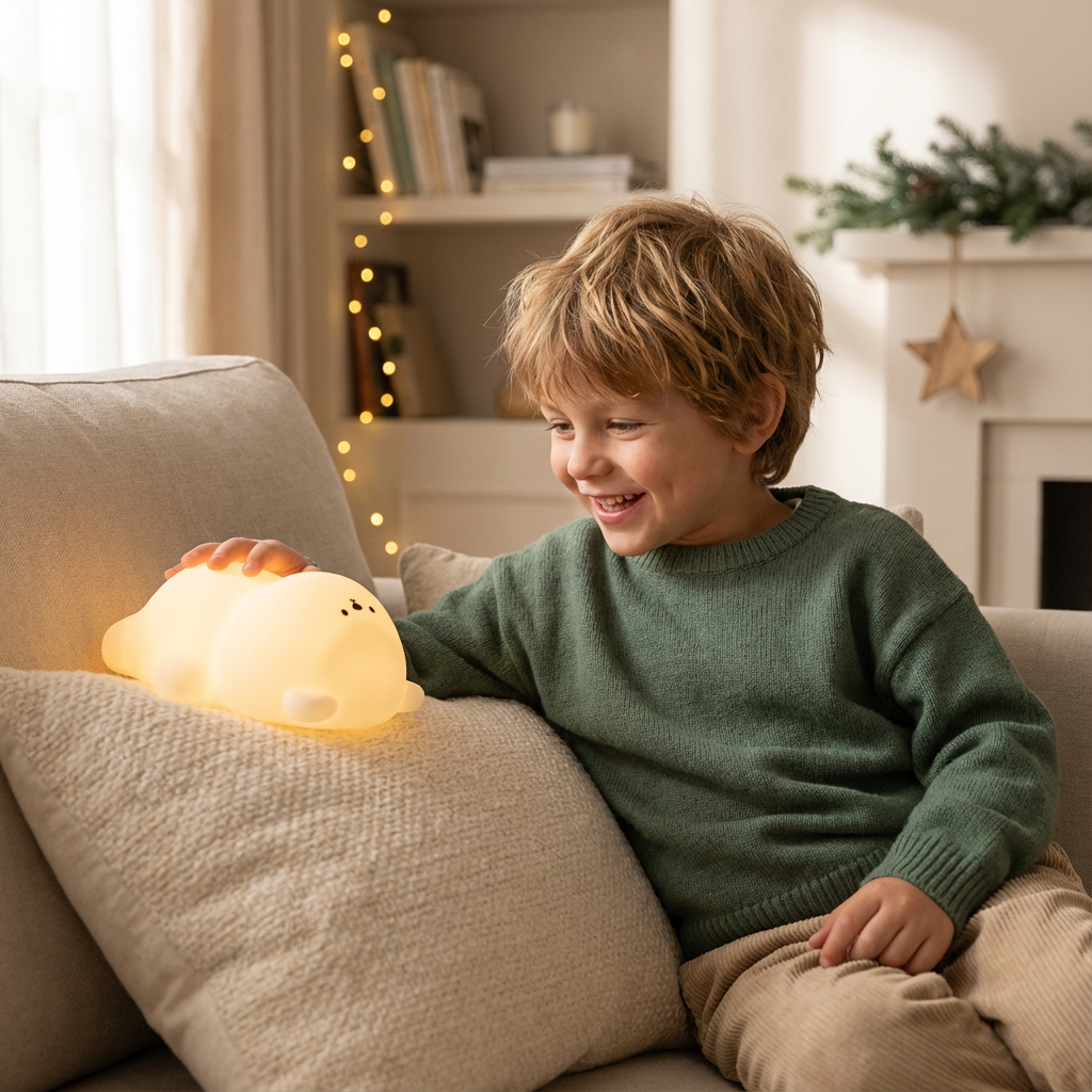 Sehen Sie, wie Kinder gemütliche Momente und magisches Spielen mit ihrem neuen leuchtenden Freund erleben